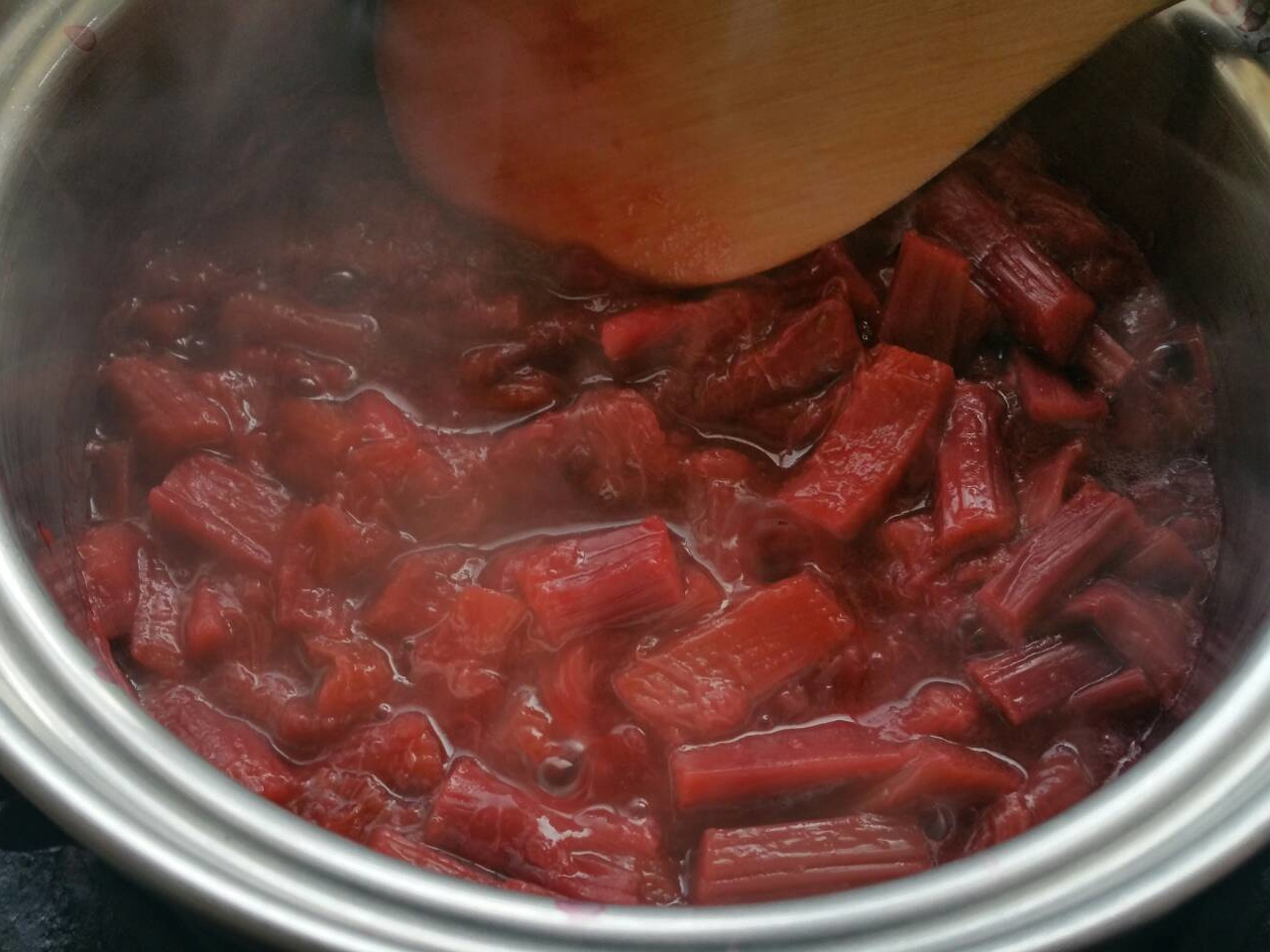 ④玉ねぎが透き通ってきたらルバーブを加える。
