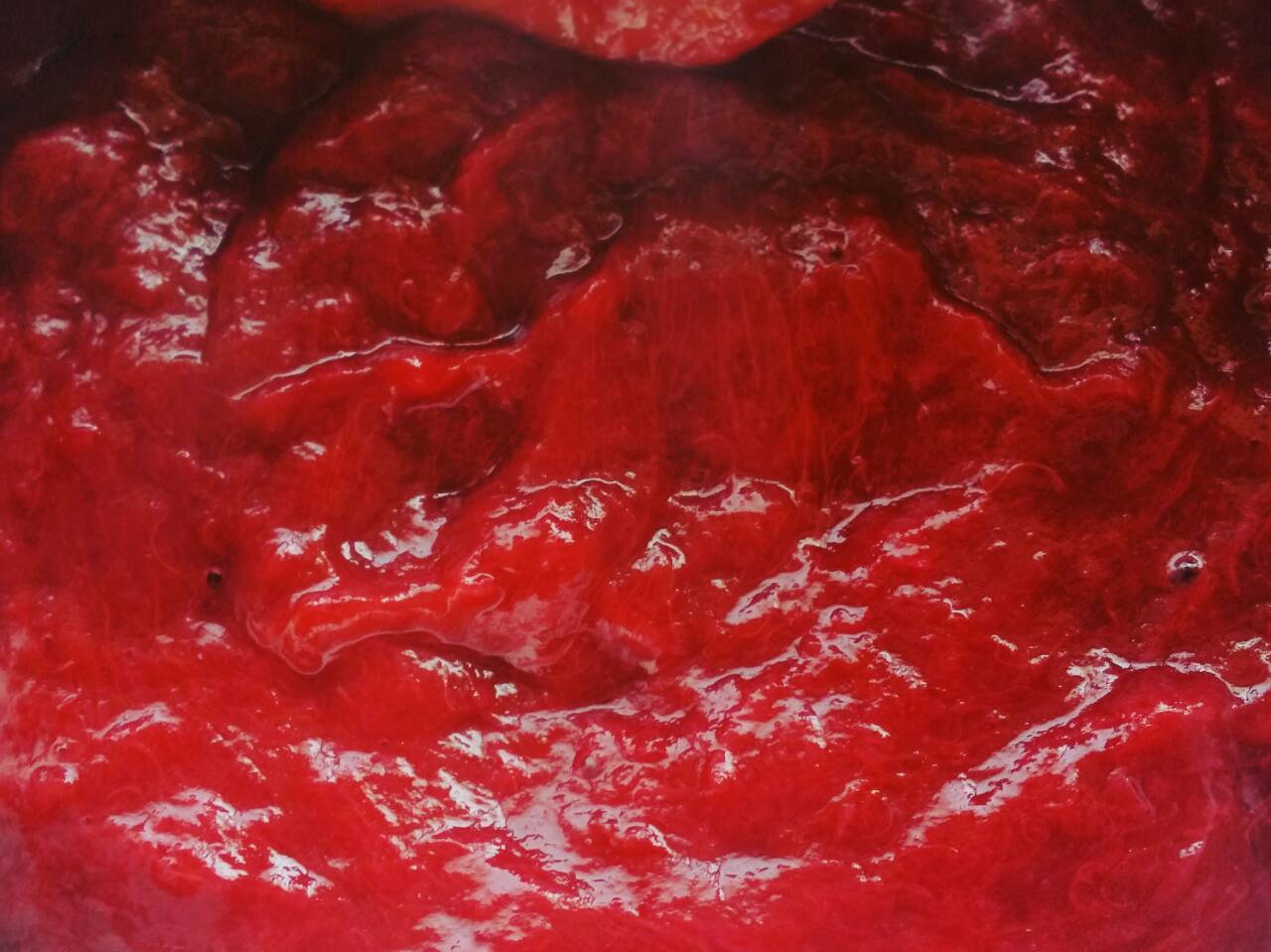 ルバーブをきれいに水洗いし、1~2cmに切り分量のグラニュー糖とともに鍋に入れておく。